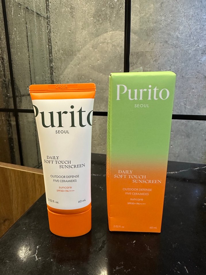 Purito - Daily Soft Touch Sunscreen SPF50+ PA++++ (Nemlendirici ve Bariyer Koruyucu Seramidli Güneş Kremi) 2-3 kere kullandım, yeni aldım, çildim yağlı olduğu için güneş kremi bulmaya çalışıyorum, ama maalesef bana uymadı bu yüzden satıyorum.
