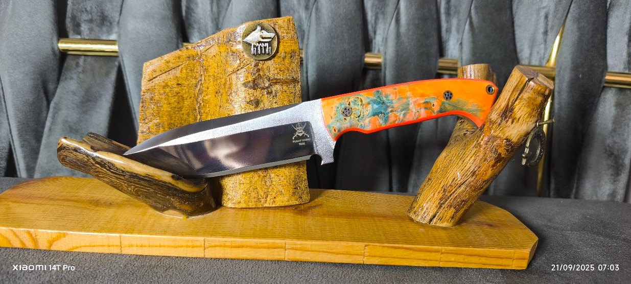 Ürün 7 mlim kalınlığa ve elde ayna perdaha sahiptir. Kabze stabilize ağaç kırmızı liner desteklidir.Özel dikim deri kılfı mevcuttur. Usta imzası üzerindedir.