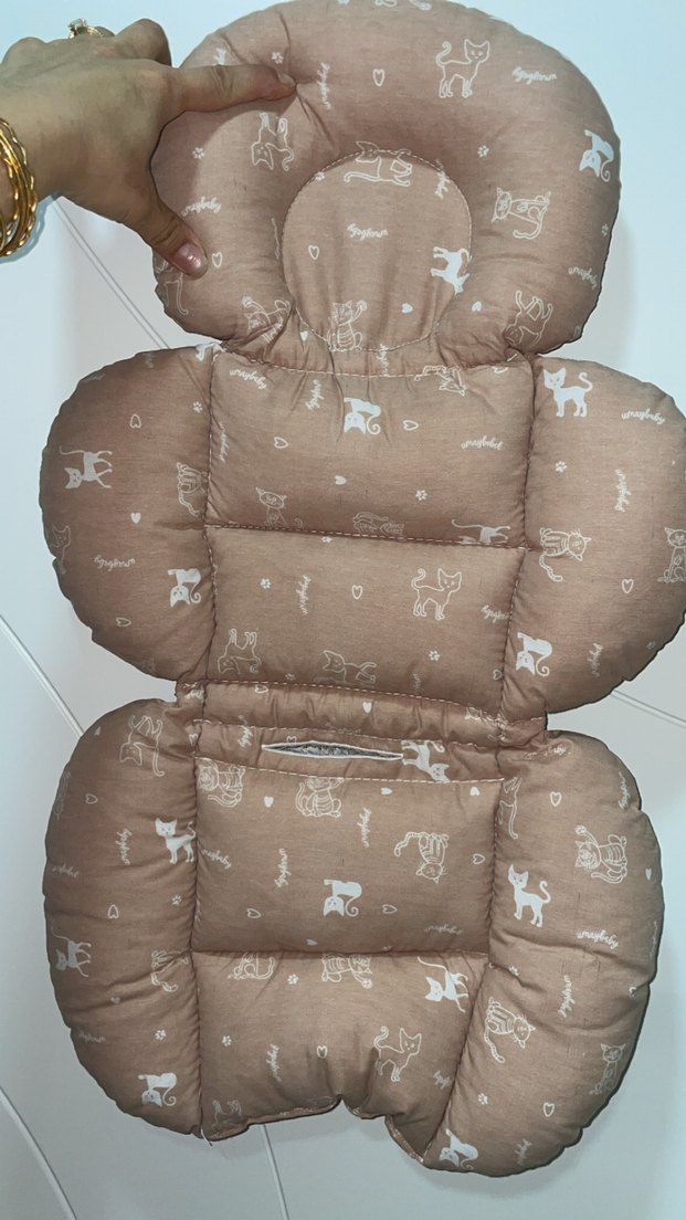Yumuşak sentetik kumaştan yapılmış, çocuk arabaları için kahverengi pastel desenli rahat minder.