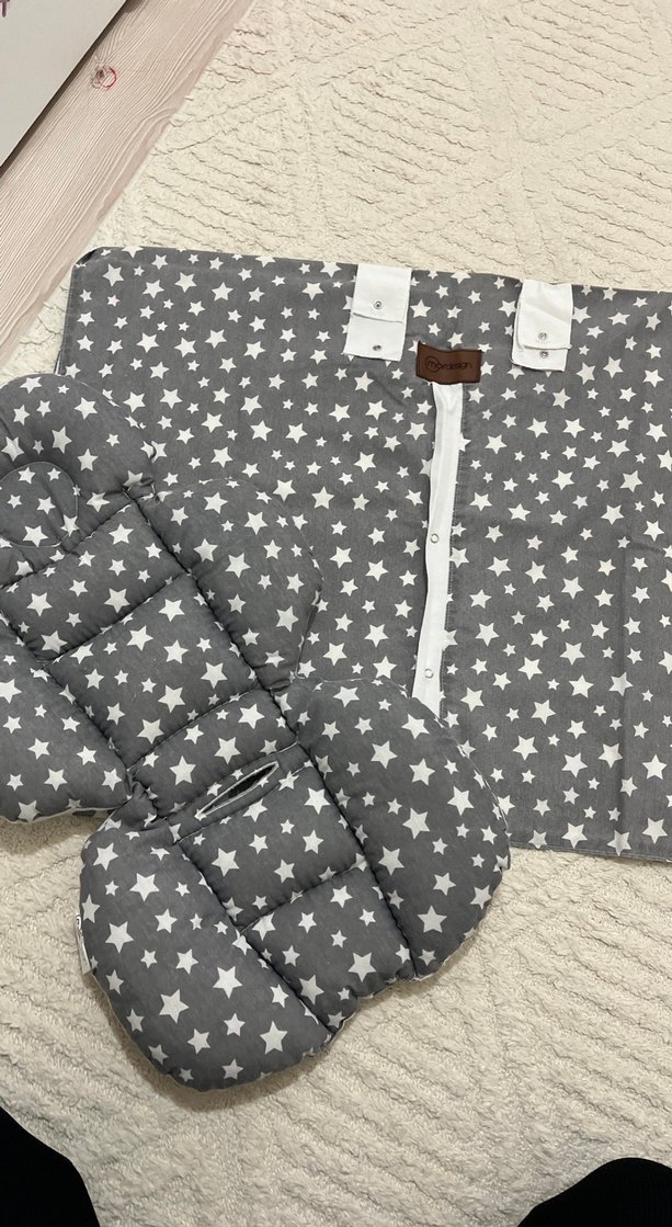 Yumuşak sentetik kumaştan gri, yıldız desenli bebek uyku seti. Düğmeli kapak ve dolgulu yastık içerir, konfor sağlar. ⭐