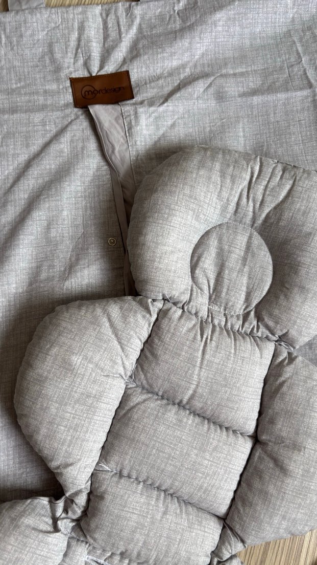 Gri renkte, desensiz kumaşla yumuşak destek sağlayan emzirme ve hamilelik yastığıdır.
