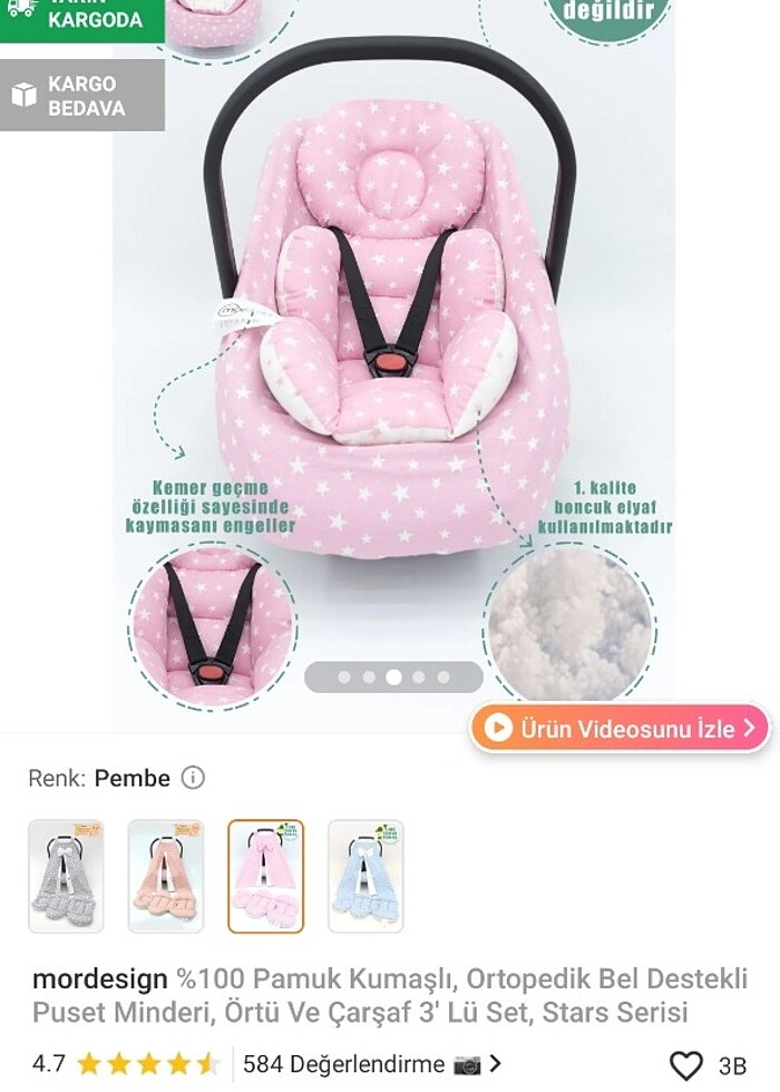 Puset ve 3 parça puset örtü setidir çok temiz 3 ay kullanılmıştır puset civil'den alınmıştır puset örtü seti Trendyoldan alınmış tır
