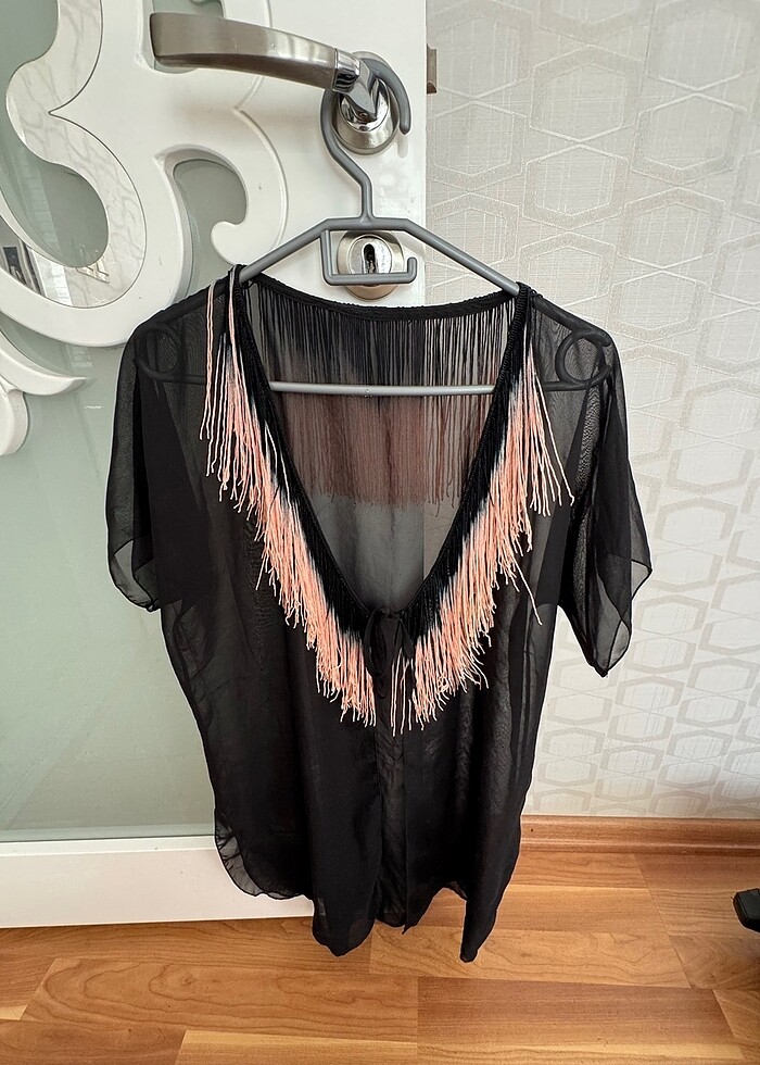 Az kullanılmış yeni durumda, pembe püskül detaylarıyla gayet şık ve rahat kullanabileceğiniz bir pareo