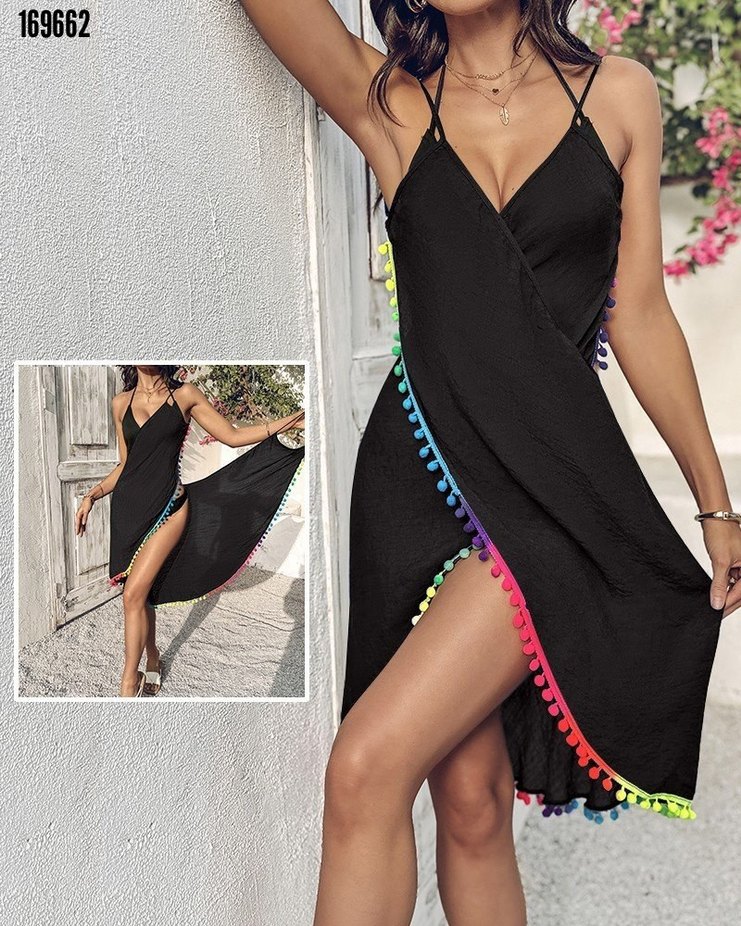 ❤Kadın askılı derin v yakalı çapraz geçmeli ponponlu bürümcük pareo Beden: S-M/L-XL/2XL-3XL Kumaş: BÜRÜMCÜK