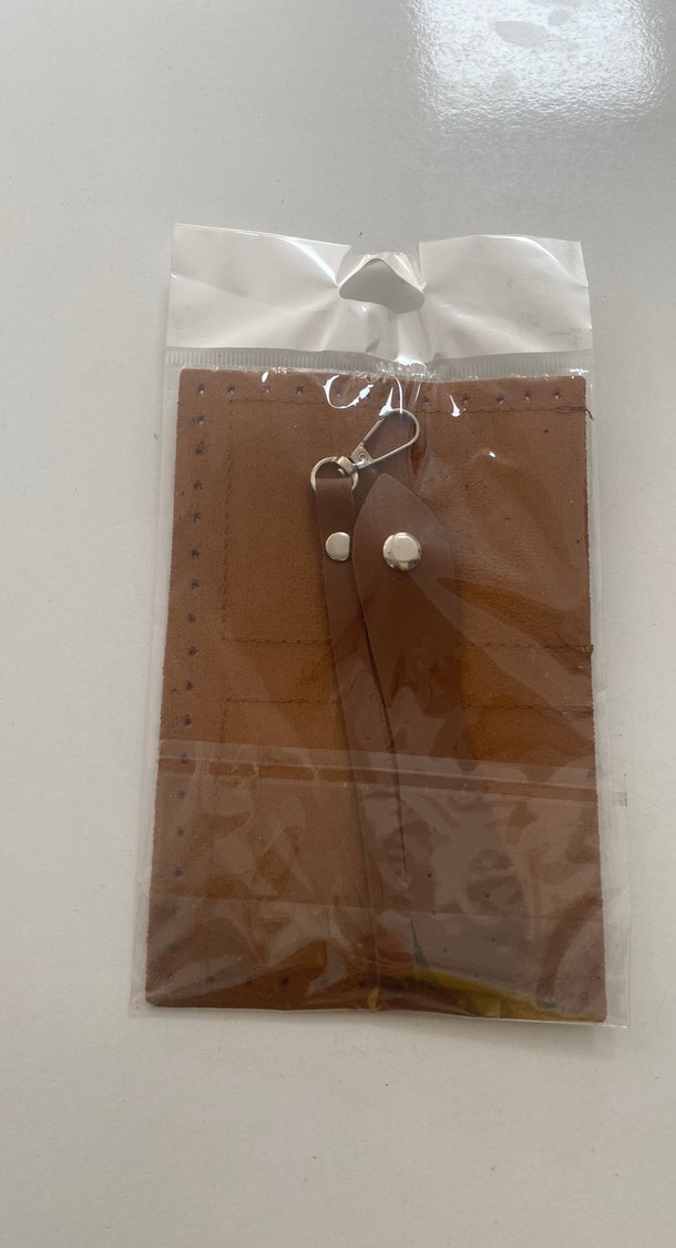 Parlak bej renkte, püsküllü detaylı erkek kartlık, minimalist ve bohem tarzda.