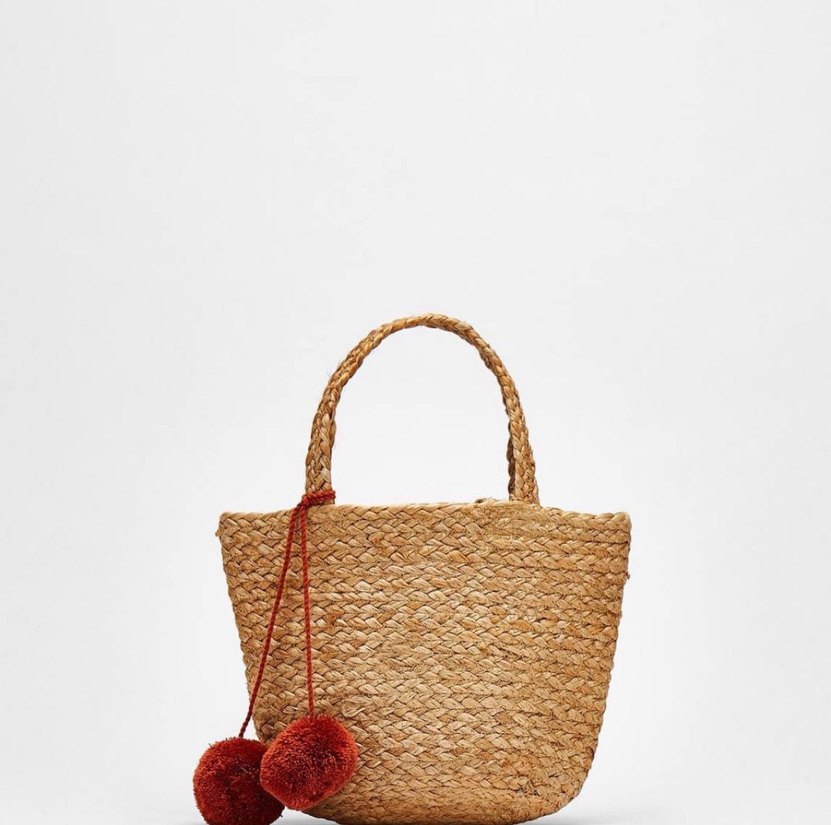 Püsküllü Bej Örgü Kadın Çanta
