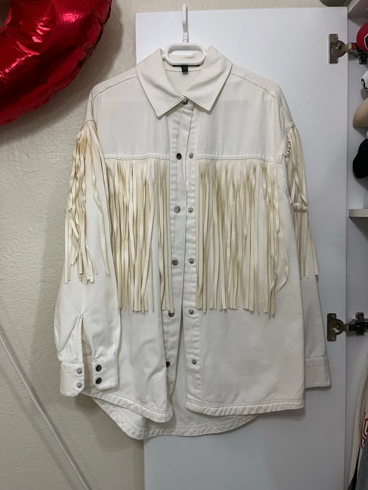 Ön ve kollarda püskül detaylı, uzun kollu, beyaz kadın gömlek. Notlu yakalı, bol kesim ve sentetik kumaştan bohem tarzı için uygun. Hiç bir defosu yoktur , oversize model. XS-S uyumlu.