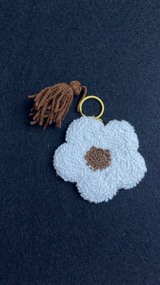 Bohem tarzda, yumuşak beyaz çiçek ve kahverengi püskül detaylı, retro ve huzurlu bir anahtarlık. İster püsküllü ister sade kullanabilirsiniz âdet fiyatıdır çoklu alımlarda indirim mevcuttur