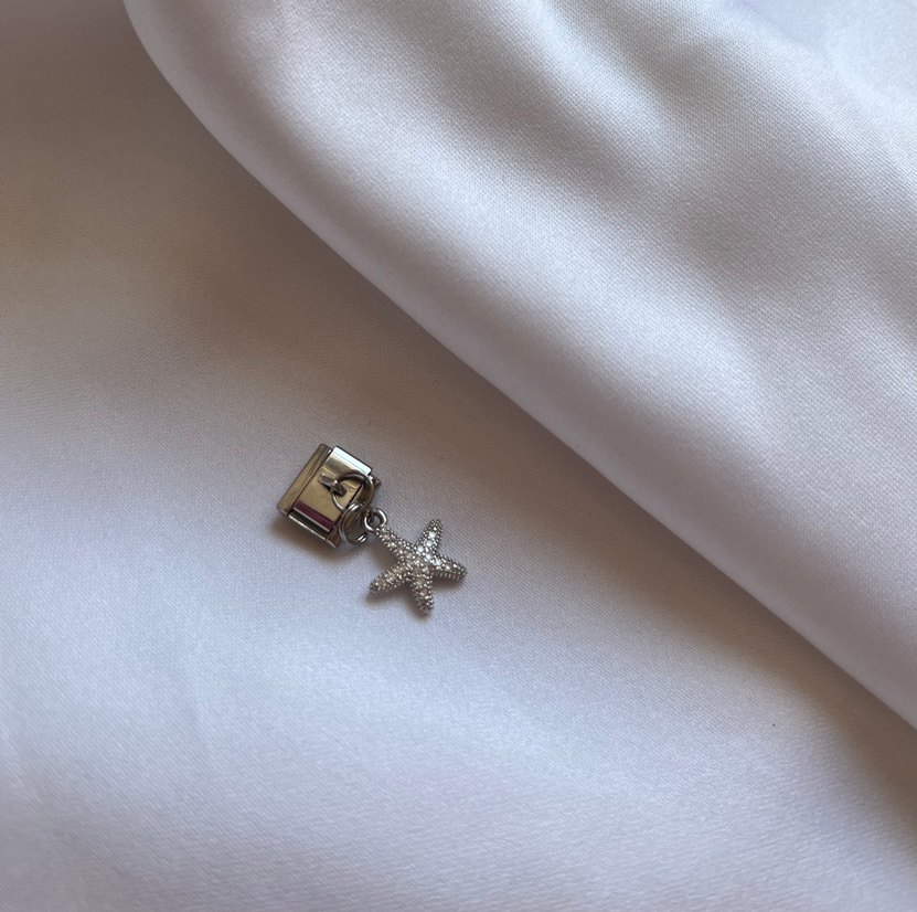 Beyaz renginde, püsküllü ve nakışlı deniz yıldızı figürlü, minimalist bohem tarzında günlük kullanıma uygun charm. ✨#italyancharm