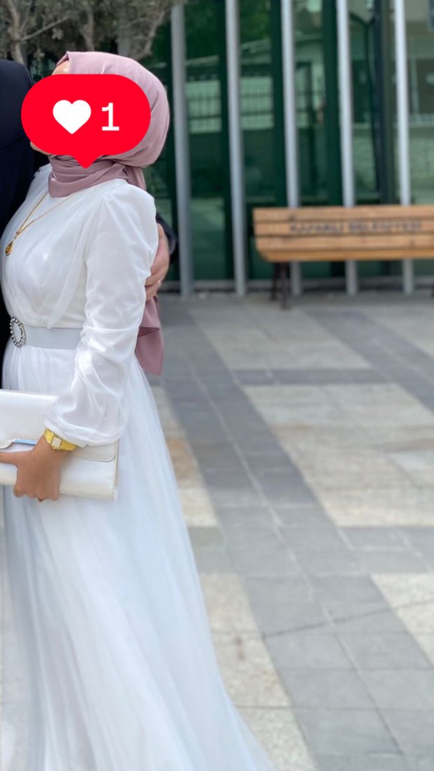 Hiç bi deformesi yok sadece nikahımda 1 saatliğine giydim dolapta duruyo öyle garaj arabası gibi Bu beyaz, uzun kollu nişan elbisesi, halter yaka ve nakış detaylara sahiptir. Püskül ve kemer tokası ile sade Paris tarzını yansıtır.