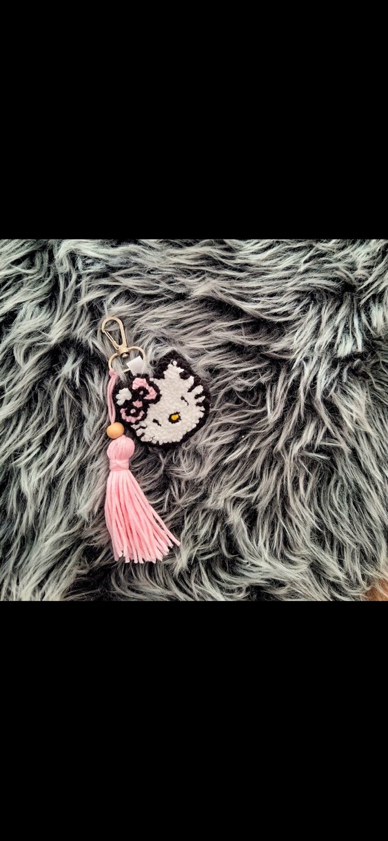 Pembe püsküllü ve nakışlı figürlü, bohem tarzda rahat kadın anahtarlık. Retro ve hippie havası taşıyor.
