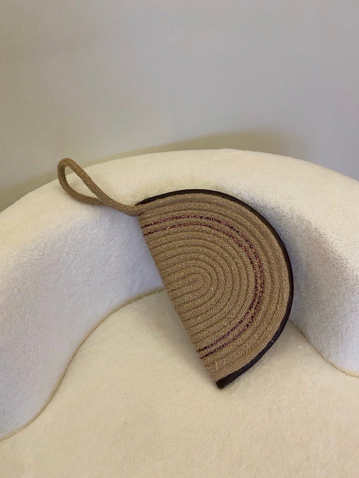 Kahverengi, sentetik kumaştan kadın clutch çanta. Bohem tarzı ve püsküllü detaylarıyla sade ve günlük kullanıma uygun.markası belirsz