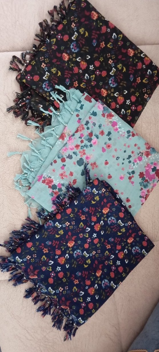 Sentetik kumaştan, püsküllü ve bohem tarzda çiçek desenli kadın yazma seti. Koyu ve canlı renk seçenekleri mevcuttur.