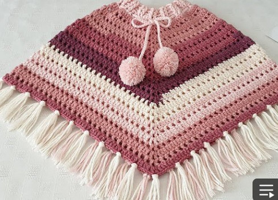 Püsküllü Bohem Kız Çocuk Örgü Panço