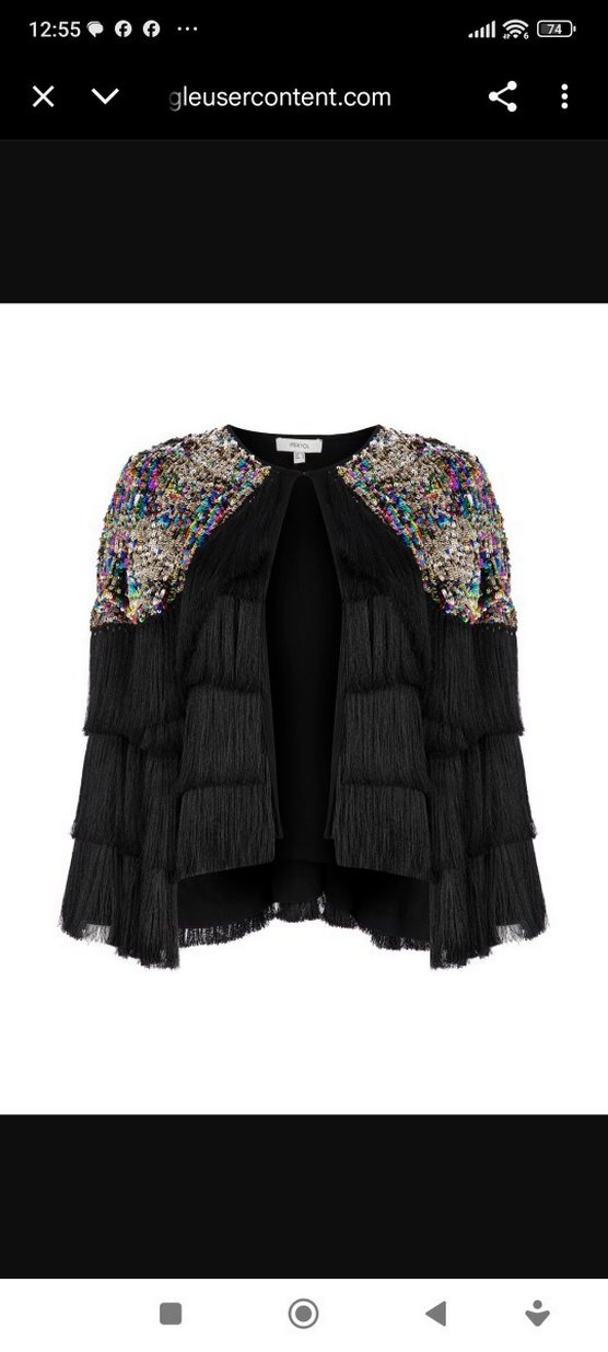 Uzun kollu, bol kesim kadın ceketi, çok renkli nakış ve püsküllerle bohem tarzını yansıtıyor, parti için uygun.s beden