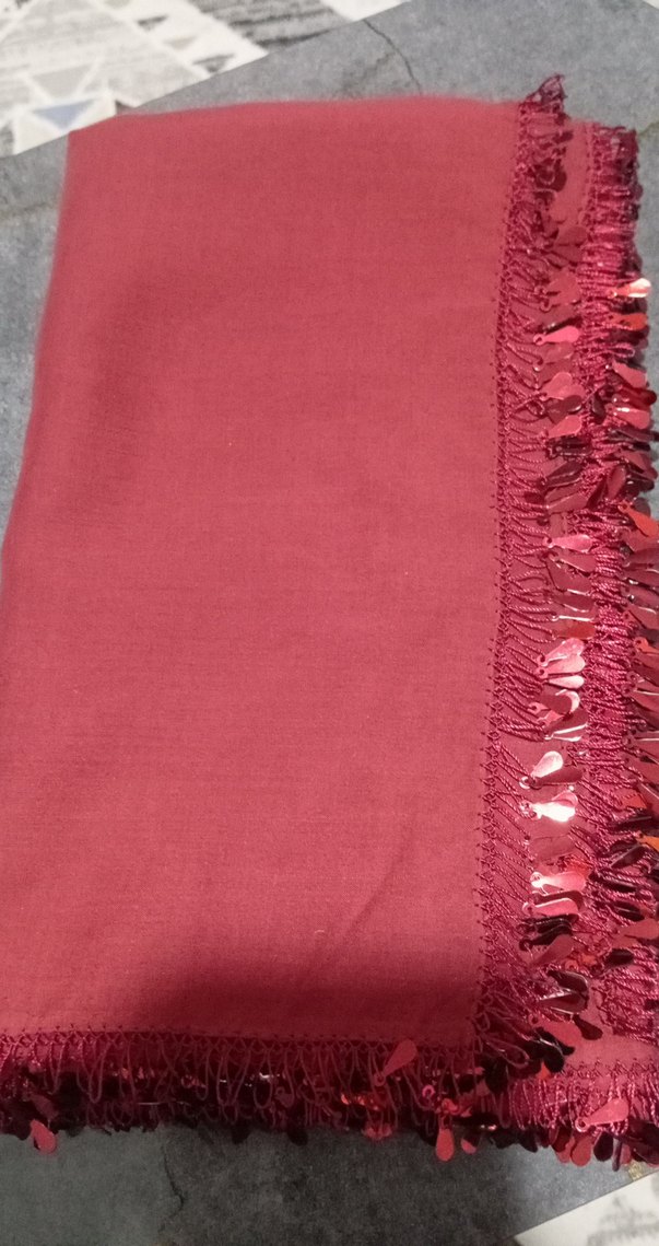 2 tarafı işlenmiştir Parlak bordo renkli, pullu pamuklu kumaştan işlenmiştir sade ve bohem tarzda kadın baş örtüsü cenk marka