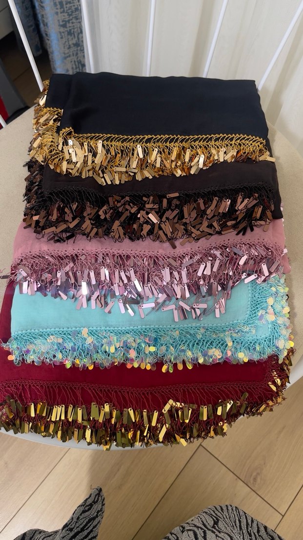 Kadınlar için çok renkli ve püsküllü, yumuşak dokulu tekstil fular. Bohem tarzına uygun detaylarla öne çıkar. Yazma