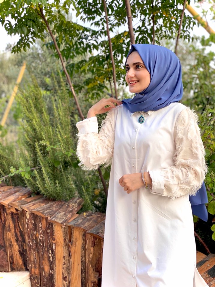 Pamuklu kumaştan, uzun kollu, etnik desenli ve püsküllü beyaz tunik. Yüksek yakalı, bol kesim ile bohem tarzda rahat bir seçim. Touche ürünüdür
