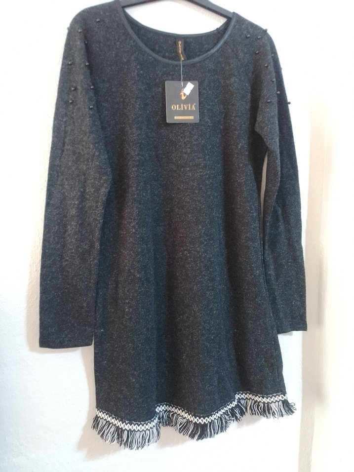 iki koltuk altı arası genişlik 49.5 cm. boy püsküllerle beraber 84 cm. omuzlar boncuk işlemeli yaka deri görünümlü harika bir tunik kısa elbise olarakta giyilebilir füme rengi kumaşı esnek