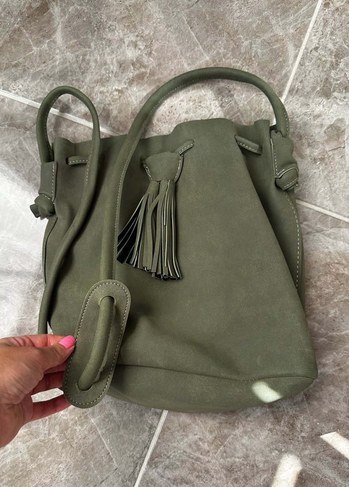 Püsküllü Haki Süet Kadın Çanta