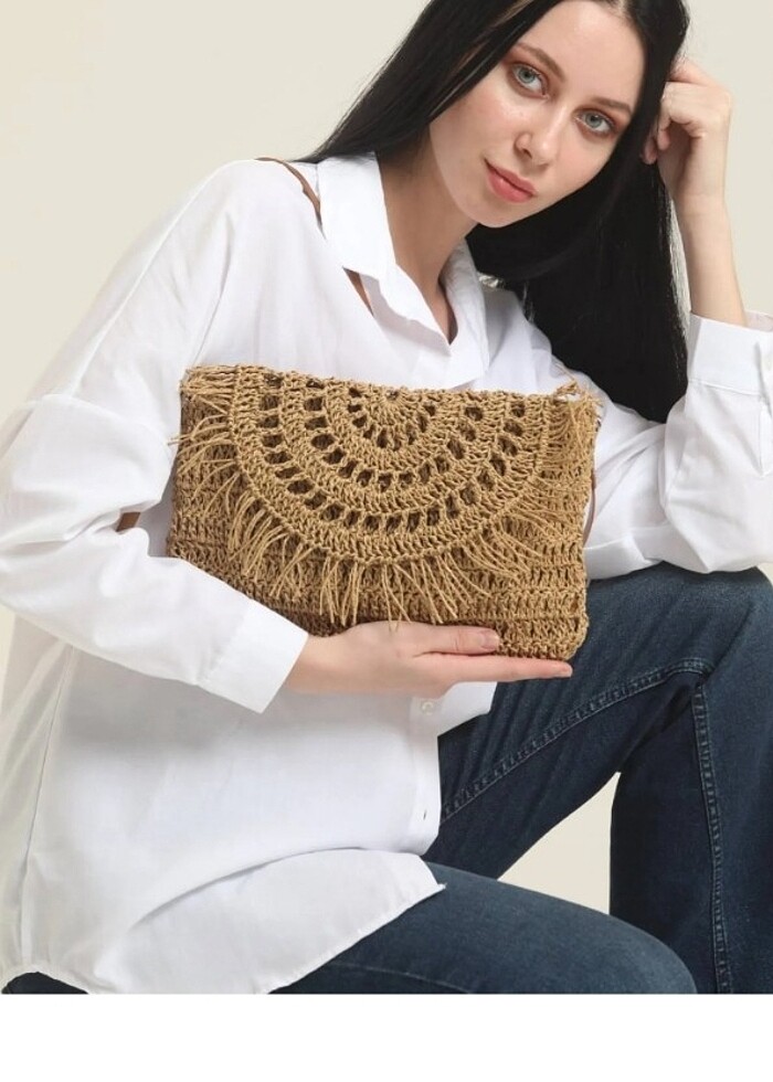 Oldukça şık duran püsküllü hasır çanta istenilen renkte ve büyüklükte sipariş verebilirsiniz