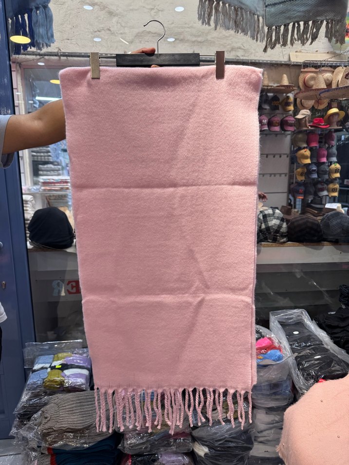 Püsküllü detaylara sahip, yumuşak ve sıcak pembe kadın şalı. Rahat bohem tarzıyla serin havalar için uygundur.
