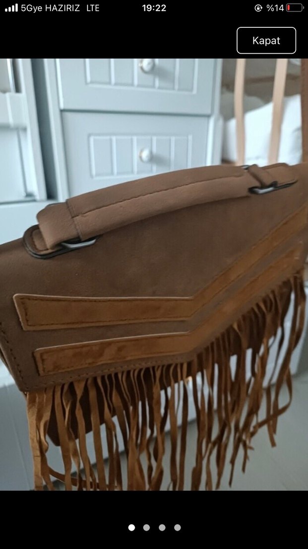Püsküllü Kahverengi Süet Bohem Kadın Çanta