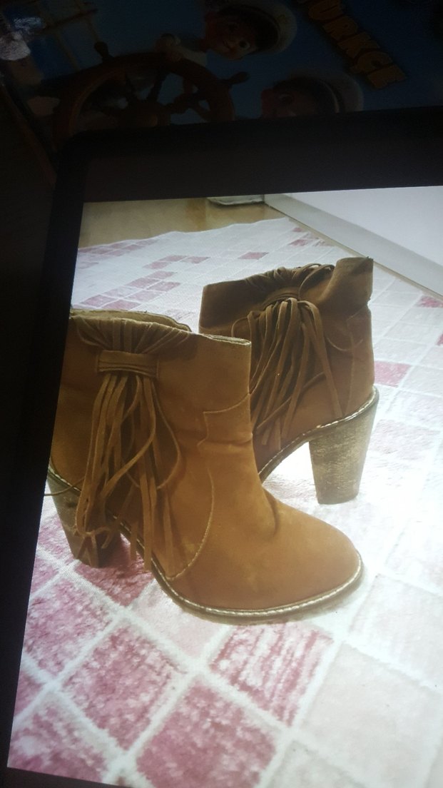 Püsküllü Kahverengi Süet Kadın Bot