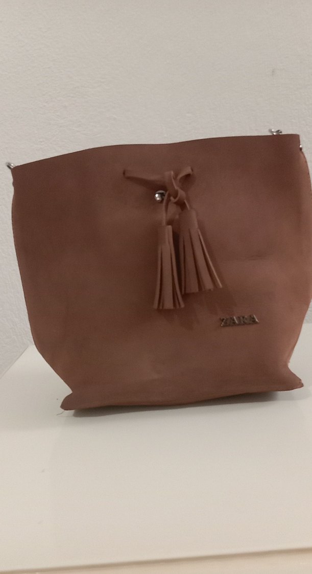 Kahverengi süet kadın çantası, püsküllü detaylarla minimalist bohem tarzda, günlük kullanım için uygundur.