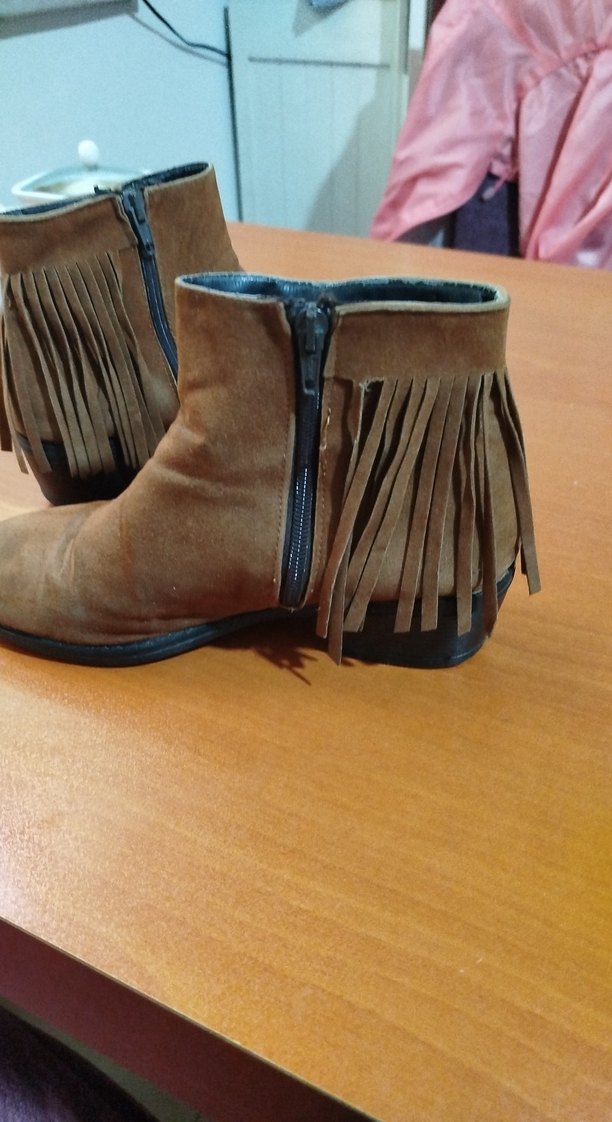 Kahverengi süet kadın botları, dolgu topuk ve püskül detaylıdır. Rahat ve şık, günlük sokak stiline uygundur.Ayakkabının hiçbir defosu yoktur.