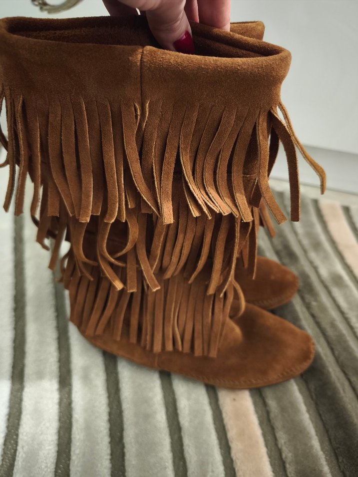 Püsküllü Kahverengi Süet Kadın vizmey