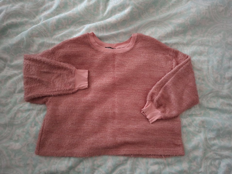 gül kurusu renginde püsküllü kazak, mevsimlik, S-M bedene uygun, sorunsuz