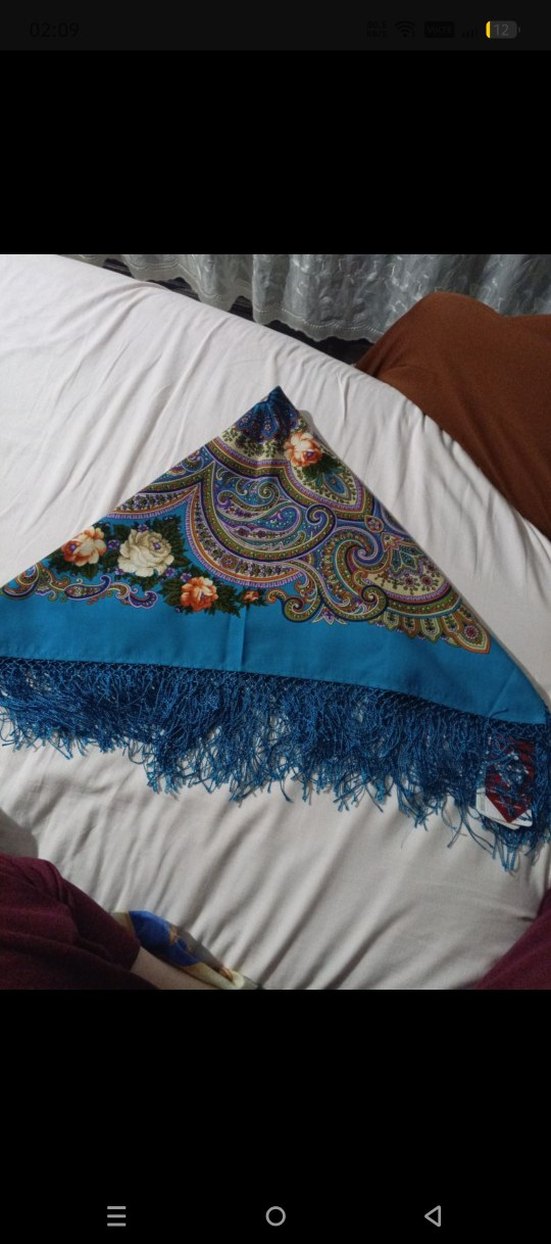Koyu mavi renkte, bohem vitange nadir bulunan koleksiyon Rusya'dan alındi tarzı paisley ve çiçek desenli, püsküllü kadın omuz şalı eşarp masa örtüsü olarak kullanılabilir / yün şal 135/¹³5 3 MT marka temsili