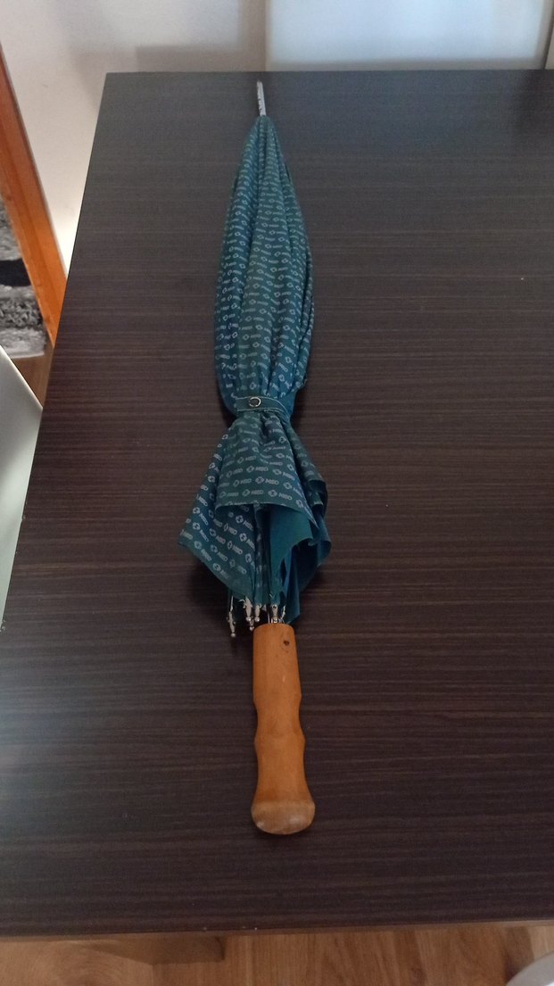 Püsküllü detaylara ve ahşap sapına sahip mavi bohem tarzda kadın şemsiye, vintage bir hava sunar. ☂️