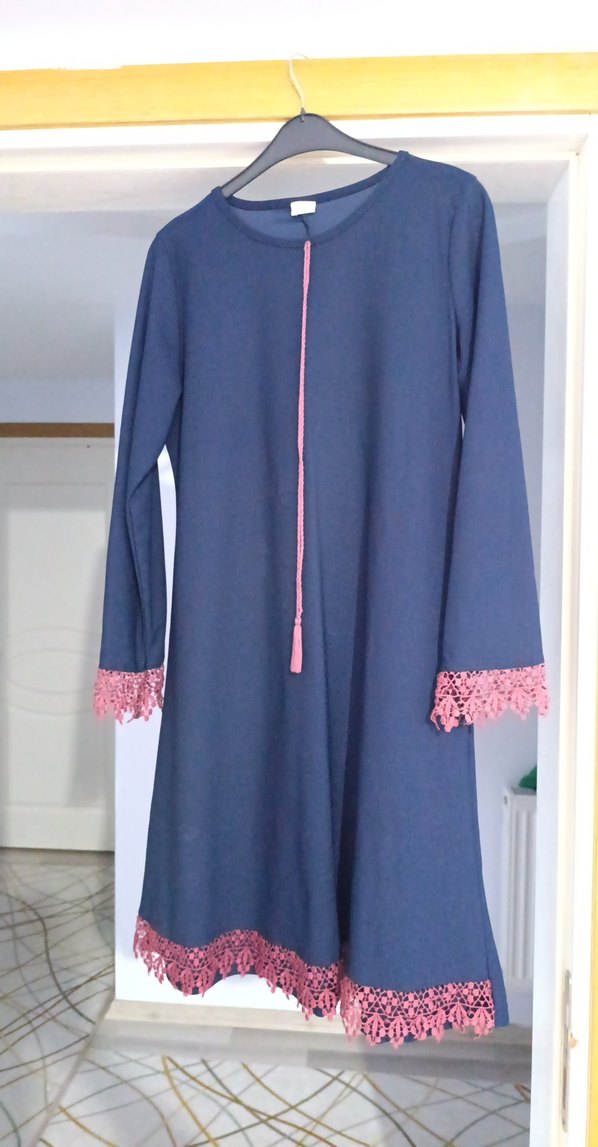 Bol kesim uzun kollu kadın tunik, yuvarlak yaka ve kollar ile etek ucunda püskül detaylarına sahiptir. polyester dokulu kumaştan üretilmiş, rahat ve bohem tarzda koyu lacivert renklidir. tofisa dan aldım sorunsuz lekesizdir. uzunluğu 100 cm iki kolaltı arası 50 cm