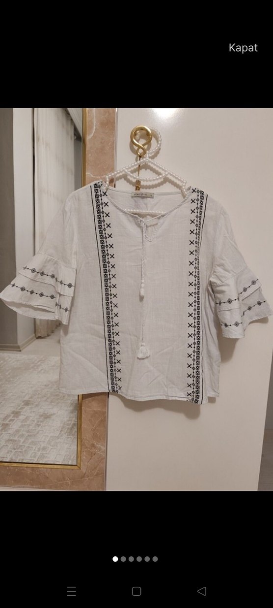 Lc Waikiki marka 40/L beden, kısa katmanlı kollu, şile bezi, pamuklu, beyaz, bol kesim bohem bluz. Gri nakış detayları ve V yaka, püsküllü tasarım. L beden ama S/36 - M/38 - L/40 bedenlere rahatlıkla olur. HİÇ KULLANILMADI, SADECE ETİKETİ YOK!!! Defosu, lekesi, yırtığı, söküğü, deliği yoktur. Tertemizdir. Ürün görselde görüldüğü gibidir. İade yoktur. Lütfen verilen ölçülere göre (ölçüler size uyuyorsa) satın alınız. ÖLÇÜLER: BOY: 57 cm. EN(İKİ KOLTUK ALTI ARASI): 50 cm.