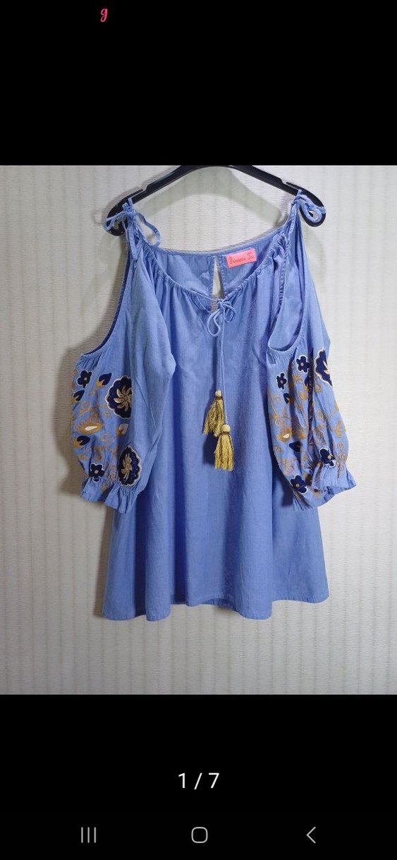 Sıfır sayılır kusursuz yumuşak ip işlemeli Püsküllü ve nakışlı, mavi pamuklu kumaştan yapılmış, bol kesimli straplez mini bluz. #zara #oxxo #kikiriki #ipekyol#twist mavi #armine #tekbir #ipekyol y2k #tesettür #armine #Adilışık #abiye #ipekyol#twist mavi #armine#tekbir#oxxo marka temsili