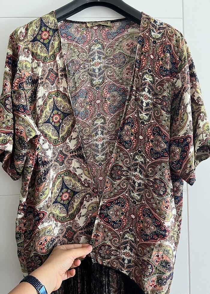 Püsküllü pareo yelek kimono vs olarak da kullanılabilir, standart beden marka temsili