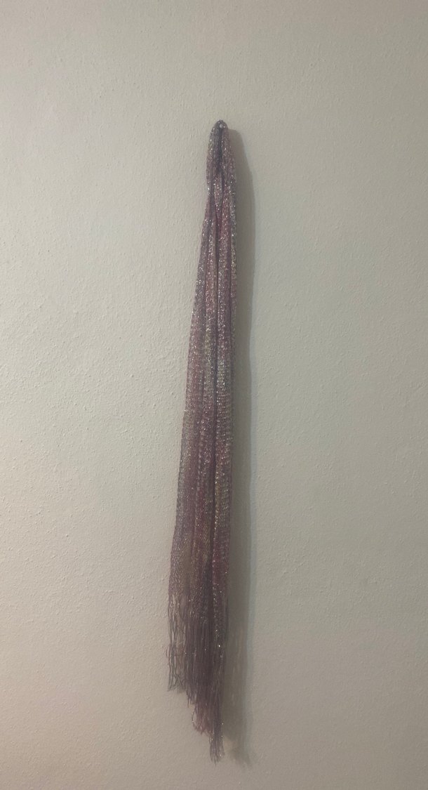 Parlak mor renkte, püsküllü ve örme dokulu bu şal, bohem tarzını yansıtır. Retro ve hippie stil için uygundur.