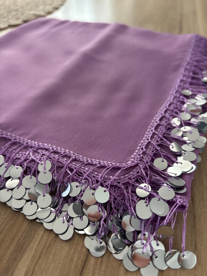 Sipariş alınır Parlak püskülleriyle mor, ipeksi dokulu kadın fularıdır. Yumuşak yapısı ve süslü püskülleriyle bohem, retro ve hippie tarzını yansıtır.