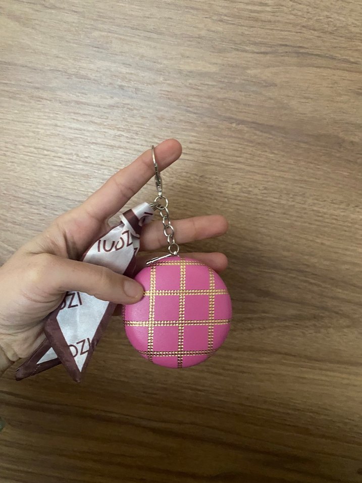 Pembe renkte, püsküllü ve kareli desenli kadın anahtarlık. Parisli karşı kültür stilinden ilham almıştır, moda öncülerine uygundur.