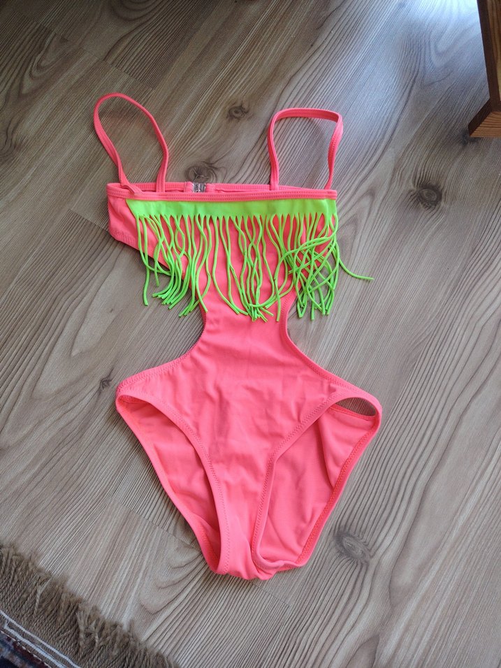 Püsküllü neon detaylı, askılı 24/36 ay kız çocuk mayokini