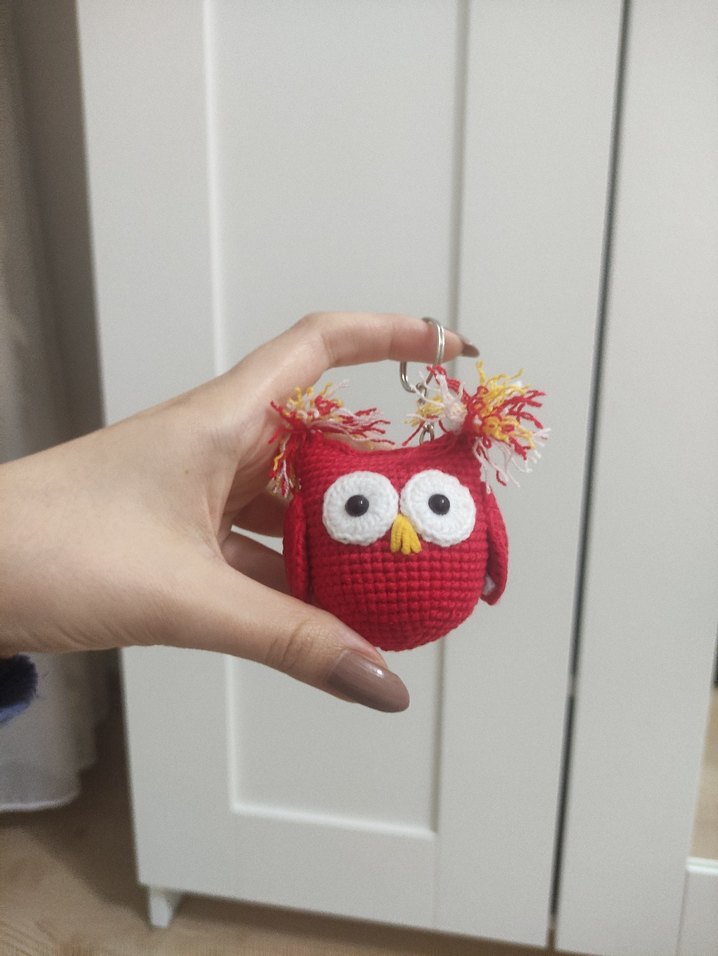 Püsküllü ve renkli kırmızı baykuş figürlü kadın anahtarlık, rahat ve bohem tarzda. Anahtarlıklarınıza veya çantalarınıza eğlenceli bir dokunuş katar.