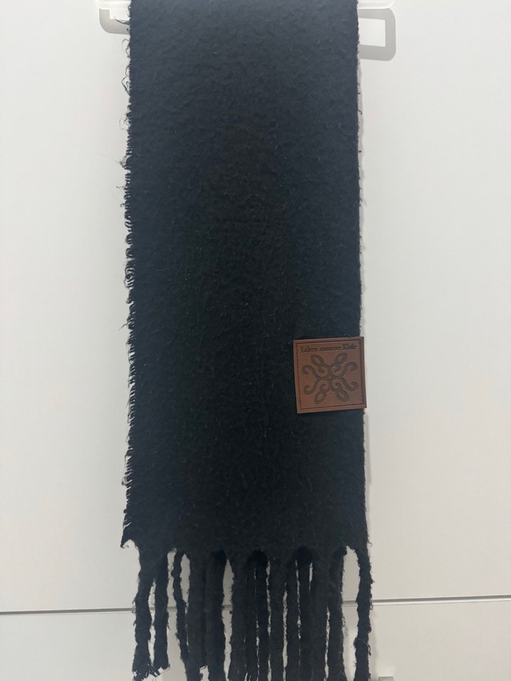 Siyah renkte, yumuşak ve sıcak dokulu bohem tarzı kadın şalı, püskül detaylarıyla rahat ve retro bir görünüm sunar.