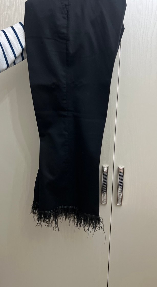 Siyah uzun kumaş pantolon, regular fit kesim ve etek ucunda püskül detaylarıyla gündelik kullanıma uygun trend sokak tarzı sunar.