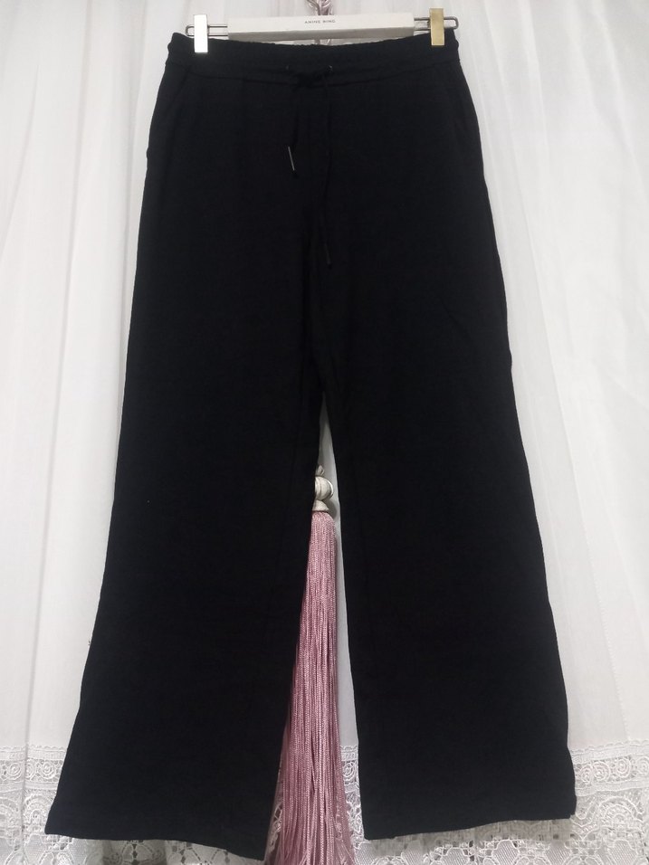 Püsküllü detaylı, siyah, salaş kesim kumaş eşofman. Midi boy ve günlük rahat stil için uygundur.