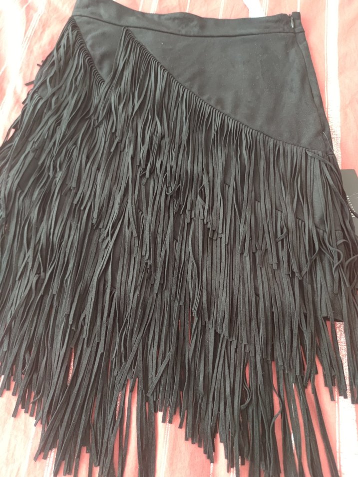 Püsküllü Siyah Süet Etek