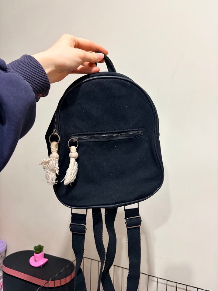 Püsküllü detaylara sahip siyah süet kadın sırt çantası, minimalist ve şık tasarımıyla günlük kullanıma uygundur.
