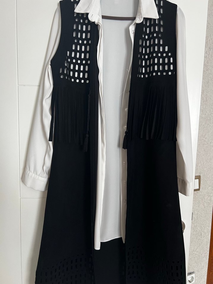 Püsküllü detaylara sahip,süet , kolsuz uzun gotik yelek. Normal kesim, günlük kullanım için uygundur.