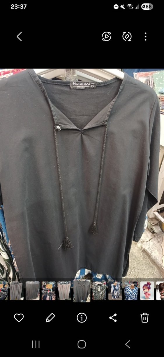 V yaka, kısa kollu, püsküllü detaylı siyah kadın bluz. Rahat kesimli ve sentetik dokulu kumaştan, günlük kullanıma uygun.